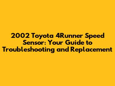 Understanding the 2002 Toyota 4Runner Speed Sensor