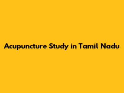 Acupuncture In Tamil Nadu: A Research Overview