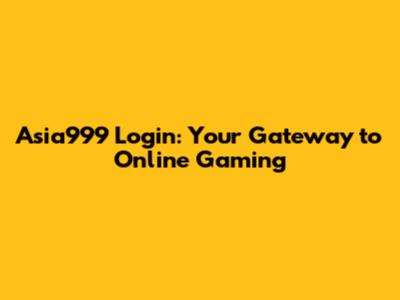 Asia999 Login: Your Gateway To Online Gaming