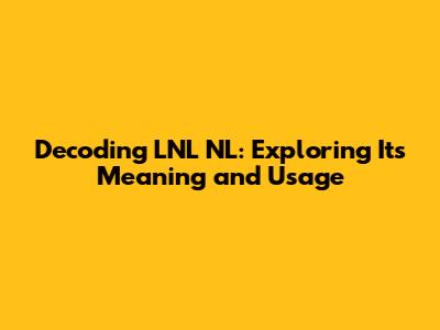 Decoding LNL NL: Exploring Its Meaning And Usage