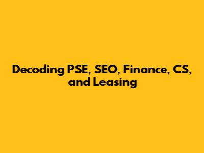Hey guys! Ever feel like you're drowning in a sea of acronyms and jargon? Well, you're not alone! Today, we're diving deep into some of the most common terms you'll encounter in the business world: PSE, SEO, Finance, CS, and Leasing. We'll break down what each of these means, how they relate to each other, and why you should care. Get ready to boost your business knowledge and maybe even impress your friends with your newfound expertise!