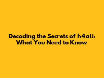 Decoding The Secrets Of H4ali: What You Need To Know