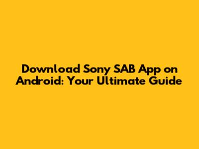 Download Sony SAB App On Android: Your Ultimate Guide