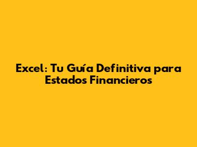 Excel: Tu Guía Definitiva Para Estados Financieros
