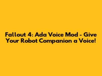 The Fallout 4 Ada voice mod scene is a treasure trove of creativity, offering a simple yet effective way to enhance your gameplay experience. Whether you're looking to add a touch of humor, immersion, or personalization, there's an Ada voice mod out there for you. So, dive in, explore the options, and give Ada the voice she deserves! And who knows, maybe you'll even be inspired to create your own voice mod and share it with the world.