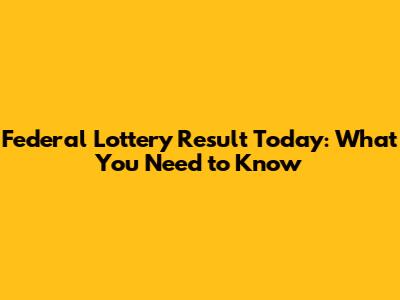 Federal Lottery Result Today: What You Need To Know