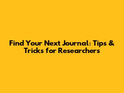 Find Your Next Journal: Tips & Tricks For Researchers