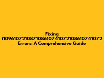 Fixing I109610721087108610741072108610741072 Errors: A Guide