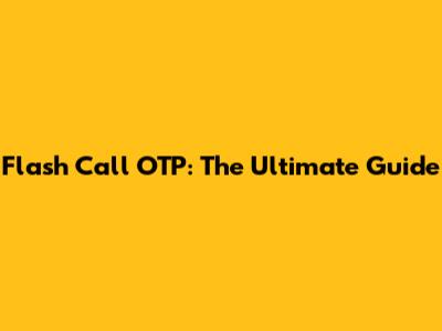 Flash Call OTP: The Ultimate Guide