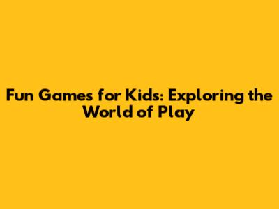 Fun Games For Kids: Exploring The World Of Play