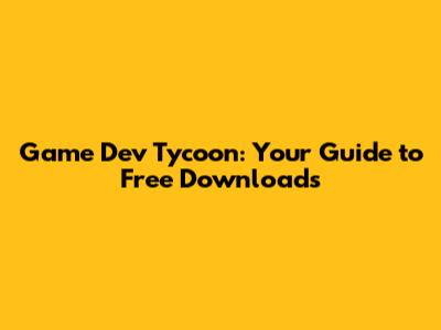 Game Dev Tycoon: Free Download Guide