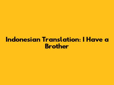 Indonesian Translation: I Have A Brother