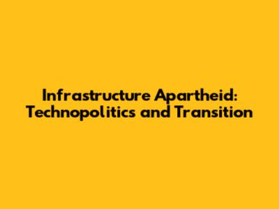 Infrastructure Apartheid: Technopolitics And Transition
