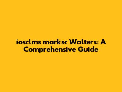 Iosclms Marksc Walters: A Comprehensive Guide