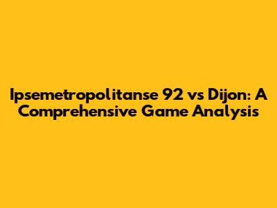 Ipsemetropolitanse 92 Vs Dijon: Game Analysis & Highlights