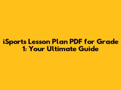 ISports Lesson Plan PDF For Grade 1: Your Ultimate Guide