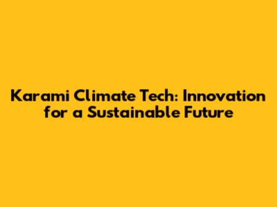Karami Climate Tech: Innovation For A Sustainable Future