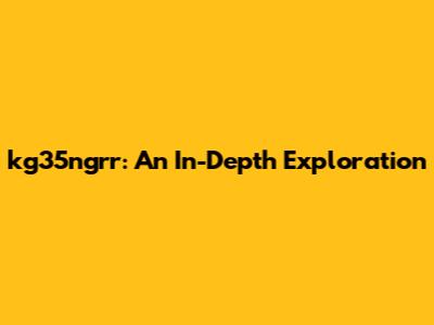 Kg35ngrr: An In-Depth Exploration