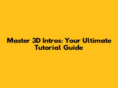 Master 3D Intros: Your Ultimate Tutorial Guide