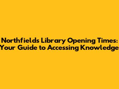 Hey guys! Are you trying to figure out when you can visit Northfields Library? Whether you're a student, a book lover, or just someone needing a quiet place to work, knowing the Northfields Library opening times is super important. Let's dive into everything you need to know about planning your visit, so you can make the most of this awesome community resource. Make sure you stick around until the end where I'll tell you all the cool events that are being hosted in the library, and how you can sign up!