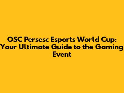 OSC Persesc Esports World Cup: A Gamer's Guide