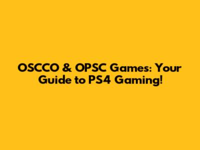 OSCCO & OPSC Games: Your Guide To PS4 Gaming!