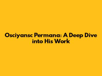 Osciyansc Permana: A Deep Dive Into His Work