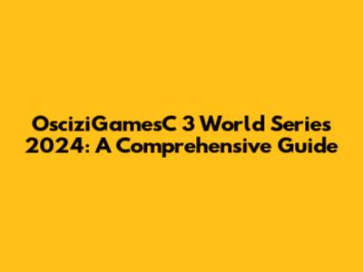 OsciziGamesC 3 World Series 2024: Everything You Need To Know!