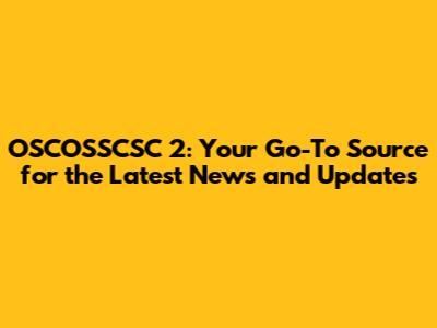 OSCOSSCSC 2: Breaking News And Updates