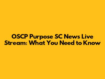 OSCP Purpose SC News Live Stream: What You Need To Know