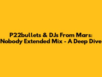 Now, let's get to the heart of the matter: the "Nobody (Extended Mix)" itself. This track is an absolute monster. From the moment it kicks in, you know you're in for a ride. The extended mix format is crucial here, guys. It's designed for the club, for the festival, for those moments when the DJ needs to build tension, create atmosphere, and absolutely ignite the dance floor. This isn't a radio edit; this is the full, unadulterated experience. The intro often starts with a captivating beat, maybe some atmospheric pads, teasing the energy to come. Then, the main melody or vocal hook begins to weave its magic. In "Nobody", you can expect a powerful vocal, something that resonates and sticks with you, layered over a driving beat that's impossible to ignore. The build-ups are masterfully crafted, with rising synths, snare rolls, and that signature anticipation that makes the drop so rewarding. And when that drop hits? Pure euphoria. It's a wall of sound, a release of all the pent-up energy, designed to make you move. The track likely features those signature P22bullets and DJs From Mars elements: a strong bassline, chunky kicks, crisp snares, and soaring melodic synths that create that anthemic feel. The extended nature of the mix allows these elements to develop and evolve. You get extended breakdowns that let the groove breathe, allowing the DJ to work the crowd, and then powerful re-entries that bring the energy back with even more force. It’s about the journey the track takes you on, not just a quick burst of energy. The production quality is top-notch, ensuring that every element sounds crisp and powerful, whether you're listening on a high-end sound system or on your favorite streaming device. The layering of sounds is intricate, with subtle details that reveal themselves on repeated listens. The track manages to balance raw energy with melodic sensibility, making it appealing to a wide range of electronic music fans. It’s the kind of track that DJs will be rinsing for months, if not years, to come, because it has that timeless quality and undeniable dancefloor impact. The careful arrangement and dynamic shifts ensure that the listener remains engaged throughout its extended runtime, making it a true testament to the artists' skill in crafting long-form electronic music that doesn't feel repetitive or drag.