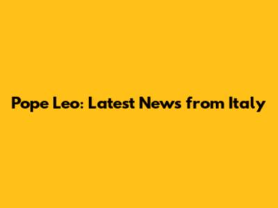 Pope Leo: Latest News From Italy