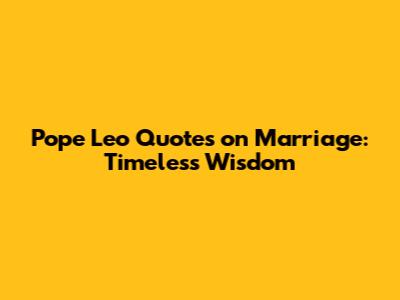Pope Leo Quotes On Marriage: Timeless Wisdom