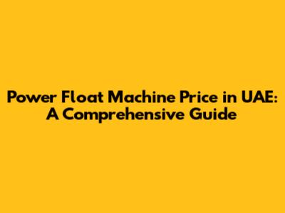 Power Float Machine Price In UAE: A Comprehensive Guide