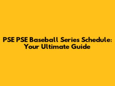 PSE PSE Baseball Series Schedule: Your Ultimate Guide