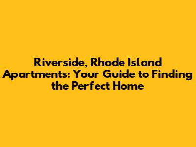 Hey guys! Are you thinking about moving to Riverside, Rhode Island and looking for the perfect apartment? Well, you've come to the right place! This guide is packed with everything you need to know to find an apartment that fits your lifestyle and budget in this awesome little corner of the Ocean State. We'll dive into the best neighborhoods, what to look for in an apartment, and even some tips for snagging a great deal. So, let's get started and find you your dream home in Riverside!