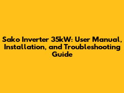 Sako Inverter 35kW: User Manual Guide & Troubleshooting