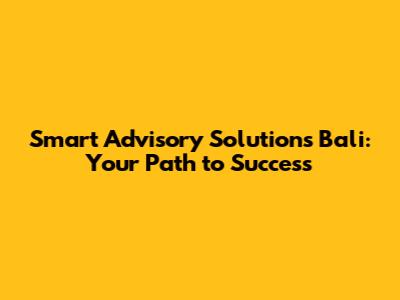 Smart Advisory Solutions Bali: Your Guide To Success
