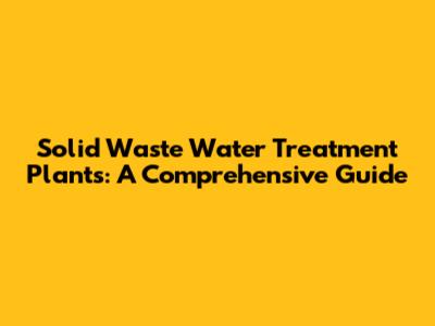 Solid Waste Water Treatment Plants: A Comprehensive Guide
