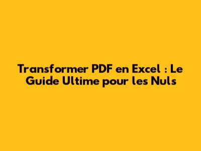 Transformer PDF en Excel : Le Guide Ultime pour les Nuls
