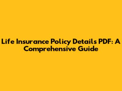 Understanding Your Life Insurance Policy Details (PDF Guide)
