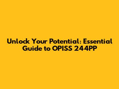 Unlock Your Potential: Essential Guide To OPISS 244PP