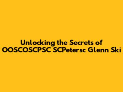 Unlocking The Secrets Of OOSCOSCPSC SCPetersc Glenn Ski