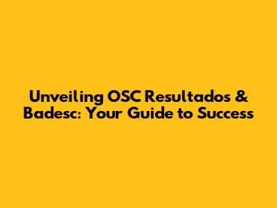 Unveiling OSC Resultados & Badesc: Your Guide To Success