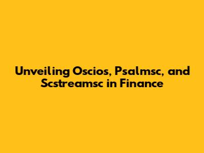 Unveiling Oscios, Psalmsc, And Scstreamsc In Finance
