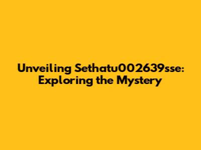 Unveiling Sethatu002639sse: Exploring The Mystery