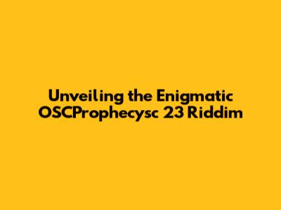 Unveiling The Enigmatic OSCProphecysc 23 Riddim