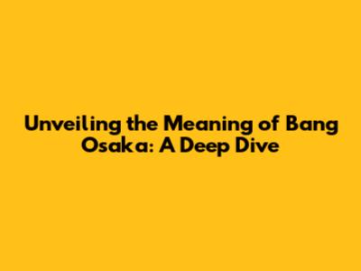Unveiling The Meaning Of 'Bang Osaka': A Deep Dive