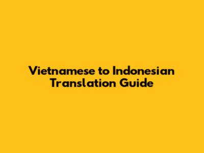 Vietnamese To Indonesian Translation Guide