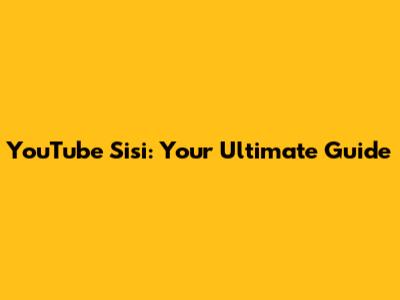 YouTube Sisi: Your Ultimate Guide
